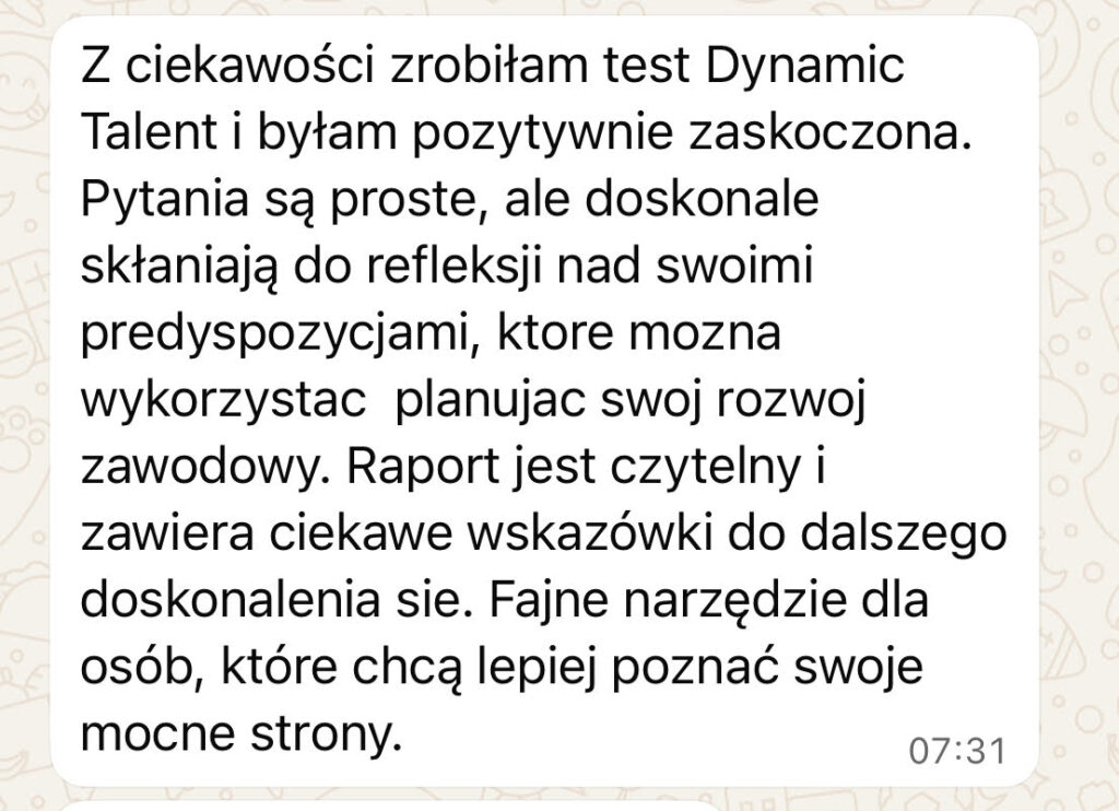 Test Talent Dynamics z raportem, opisującym Twój główny talent